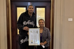 双喜临门!新科扣篮王凯沙·约翰逊获得奥克兰市政厅颁发的嘉奖令